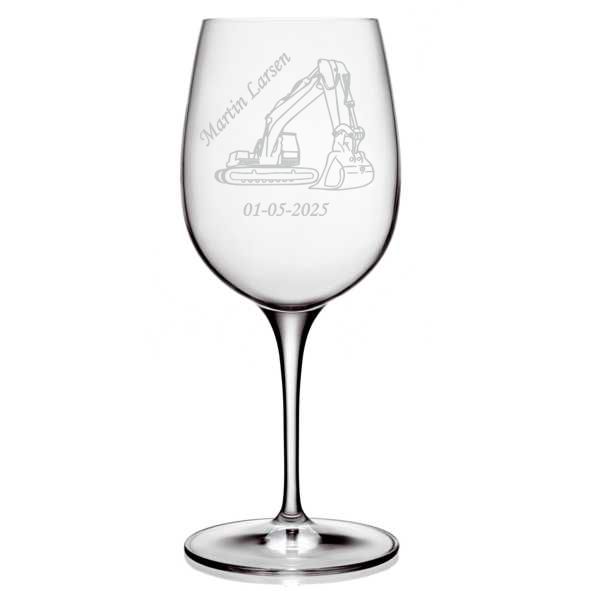 En personlig gave som vinglas med gravemaskine kan være en sjov og unik idé!